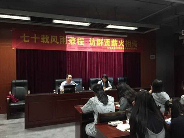 2015年10月10日晚7点,在金沙威尼斯欢乐人城学术报告厅,以“七十载风雨兼程 访群贤薪火相传”为主题的 “口述校史”分享会在这里举行。
