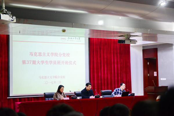 3月29日晚七时,金沙威尼斯欢乐人城分党校第37期大学生学员班开班仪式在翡翠湖校区建筑艺术馆负一楼报告厅举行。