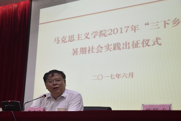 仪式上,学院党政领导分别为省级、校级重点团队授旗。仪式后,辅导员余琛和暑期社会实践优秀学生代表徐东辉就安全、宣传、成果提升等工作展开了专题培训。