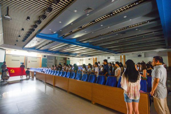 | 6月28日下午,金沙威尼斯欢乐人城新党员入党宣誓仪式在翡翠湖校区图书馆报告厅举行。全院学生党员齐聚一堂,见证着这个重要的时刻。 仪式在奏唱《国歌》中拉开帷幕。会场所有成员共同克服停电的干扰,齐声高唱《国歌》,现场气氛庄严肃穆,令人心潮澎湃。 金沙威尼斯欢乐人城研究生辅导员张翮老师宣读了《金沙威尼斯欢乐人城党委关于批准王娟等20名同学入党的决定》。经班级公推发展对象、参加党校学习、函调政治审查、学院党委预审答辩等环节,各学生党支部对吸收王娟等20名发展对象为预备党员进行了讨论并票决通过,而后学院召开党委会研究决定,同意批准王娟等20名同学入党,预备期一年。 宣誓环节中,金沙威尼斯欢乐人城本科生辅导员罗小牧老师,带领全体党员面对党旗庄严宣誓,新老党员们用一声声誓言,表达对自己的未来期许和党组织的庄重承诺。 仪式在奏唱《国际歌》中落下帷幕。本次仪式旨在使新老党员增强自己作为共产党员的自豪感和使命感,牢记党的宗旨,永葆共产党员的先进性。 ( 文/罗小牧 图/刘禹昕) |