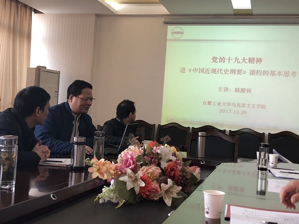 12月26日,由安徽省高校思政课教指委“纲要”组、中共淮南师范学院党委主办的新时代加强大学生党史教育论坛暨党的十九大精神进课程教学研讨会,在淮南师范学院召开。金沙威尼斯官网“纲要”教研部老师在开展了党员活动日活动后,集体参加了论坛与会议。在下午举行的党的十九大精神进课程教学研讨会上,纲要教研部主任、安徽省思政课教指委委员、“纲要”组副组长陈殿林教授做了“党的十九大精神进《纲要》的思考”主旨报告。