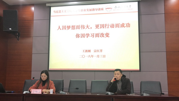 颁发仪式结束后,校友王旌刚和宗红芳为金沙威尼斯欢乐人城本科生和硕士研究生作了题为“人因梦想而伟大,更因行动而成功,你因学习而改变”的职业生涯发展指导报告。他们通过“梦想、知识、细节、心态”四个关键词讲述了自己读书、工作、创业的经历,建议同学们要勇于面对苦难,乐于战胜苦难,善于从苦难中汲取人生财富;要认真探索自我和职场,及早确立梦想并为之努力;要珍惜宝贵时光,树立终身学习、善学深学、学以致用的学习精神,打造自己的核心竞争力;要戒骄戒躁,注重细节,养成及时归纳总结的良好习惯,始终保持永远兢兢业业,永远如履薄冰,永远年轻,永远热泪盈眶。报告中,二位校友与现场的同学们积极互动,解答了同学们关于提升职场素养、树立理性创业精神等方面的问题,使同学们获益良多。