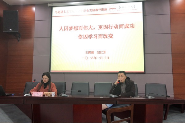 颁发仪式结束后,校友王旌刚和宗红芳为金沙威尼斯欢乐人城本科生和硕士研究生作了题为“人因梦想而伟大,更因行动而成功,你因学习而改变”的职业生涯发展指导报告。他们通过“梦想、知识、细节、心态”四个关键词讲述了自己读书、工作、创业的经历,建议同学们要勇于面对苦难,乐于战胜苦难,善于从苦难中汲取人生财富;要认真探索自我和职场,及早确立梦想并为之努力;要珍惜宝贵时光,树立终身学习、善学深学、学以致用的学习精神,打造自己的核心竞争力;要戒骄戒躁,注重细节,养成及时归纳总结的良好习惯,始终保持永远兢兢业业,永远如履薄冰,永远年轻,永远热泪盈眶。报告中,二位校友与现场的同学们积极互动,解答了同学们关于提升职场素养、树立理性创业精神等方面的问题,使同学们获益良多。