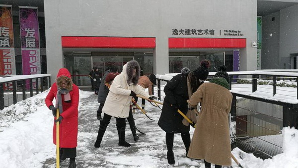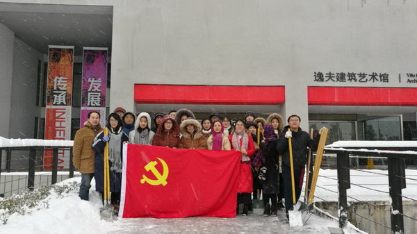 翡翠湖校区共20名师生参加了除雪活动。历经三个小时的奋战,师生们完成了对翡翠湖校区建筑艺术馆西门和南门的铲雪、周边树木打雪减压。在屯溪路校区有6名教师党员参加铲雪除冰。经过2个多小时的工作,原马院办公楼至怡园宾馆之间的道路被清理,一号行政楼周边的树木也得到打雪减压保护。