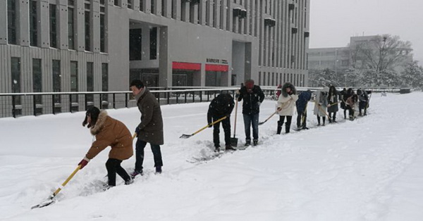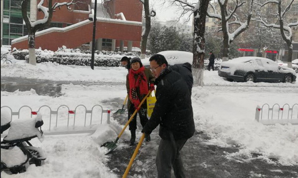 连续几天的暴雪,校园道路上积雪很厚,师生们出行困难。1月27日下午,金沙威尼斯欢乐人城党委积极响应学校号召,组织师生党员在屯溪路、翡翠湖两个校区开展扫雪除冰行动中。