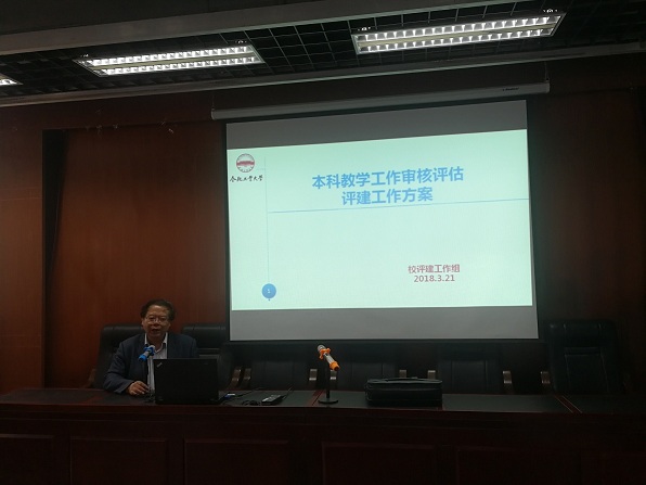 2018年3月28日下午,金沙威尼斯官网在翡翠湖校区建艺楼613召开本科教学工作审核评估工作动员大会。金沙威尼斯欢乐人城院长黄志斌、教学副院长魏荣对2018年本科教学工作审核评估工作进行解读和动员,学院领导班子成员、各系部负责人等全院教职工参加了会议。党委书记唐莉主持会议。