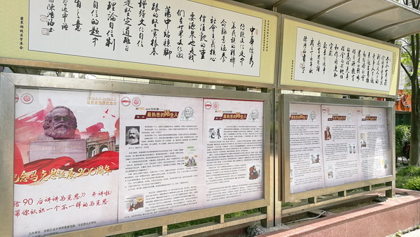 “给90后讲讲马克思”通俗宣传展板,用通俗易懂、图文并茂的形式,再现了马克思的光辉一生和伟大思想。自5月3日开始陆续展出和发布,吸引了不少人驻足观看,让更多的师生熟悉马克思,走进马克思。