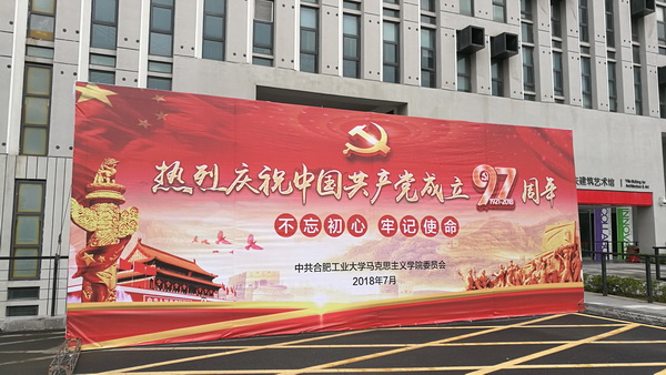 此外,金沙威尼斯欢乐人城党委还制作了庆祝建党97周年宣传桁架,浓厚了校园的节日氛围。