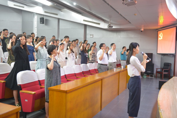 6月27日下午,金沙威尼斯欢乐人城全体师生党员在建艺馆负一楼报告厅举行党员宣誓仪式。鲜红的党旗,金灿灿的党徽,令人心潮澎湃。包括新发展的12名党员在内的全院师生党员,共同面向党旗庄严宣誓,重温共产党人的初心,许下庄严承诺。