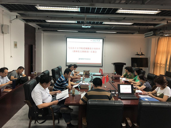 实地督查前,学院召开了巡视整改专项督查(教师党支部建设)汇报会。各教工党支部书记就党支部标准化建设情况、习近平新时代中国特色社会主义思想和党的十九大精神学习宣传贯彻情况、组织生活会开展情况和双周理论学习情况、思想政治工作开展情况(以师德师风建设为主)、意识形态工作开展情况(包括教师思想状况、新媒体阵地管理、课堂政治纪律、宗教信仰等方面)等进行了具体汇报。汇报完毕后,院党委对各教工党支部的工作台账进行了全面查阅。