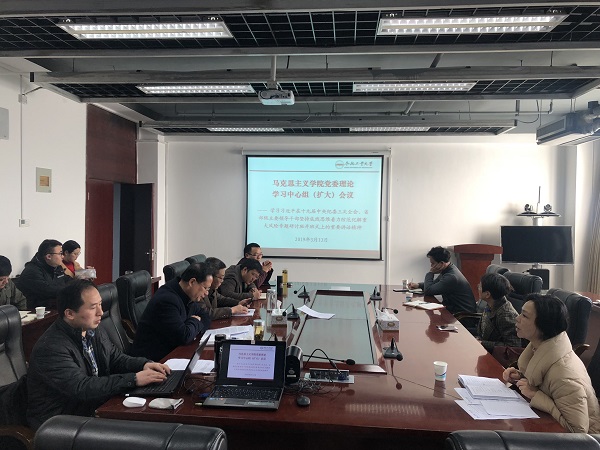 3月13日上午,金沙威尼斯欢乐人城召开党委理论学习中心组(扩大)会议,进行专题学习。院党委理论学习中心组成员,各教研部、学生党支部书记,院机关党支部全体党员参加会议。
