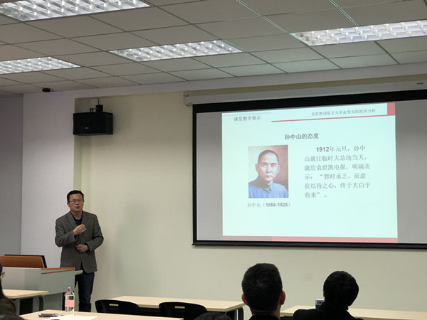 房彬讲授了《中国近现代史纲要》课程中辛亥革命与君主专制制度终结的主题,运用问题逻辑链的追问形式进行分析,步步引导学生设问探究并深入解析教学中的焦点问题,最终有效解答问题。