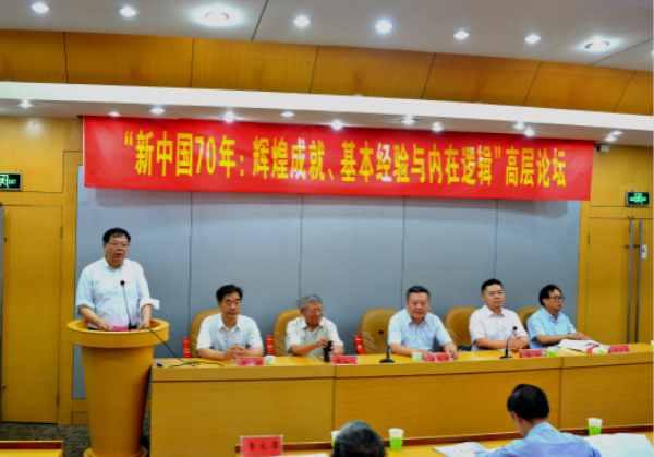 2019年6月22日,“新中国70周年:‘辉煌成就、基本经验与内在逻辑’”高层论坛在我校学术会议中心报告厅召开。开幕式由金沙威尼斯欢乐人城院长黄志斌教授主持,中共安徽省委宣传部副部长洪永平,金沙威尼斯欢乐人城党委副书记、纪委书记陆林,《当代世界与社会主义》杂志社执行主编王瑾等分别致辞。陆林副书记代表学校感谢省委宣传部和省内外各位专家学者长期以来对金沙威尼斯欢乐人城的指导和帮助,对本次高层论坛的顺利召开表示热烈祝贺。