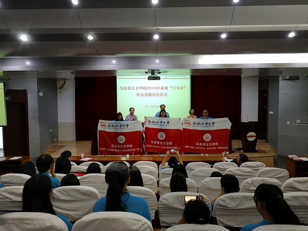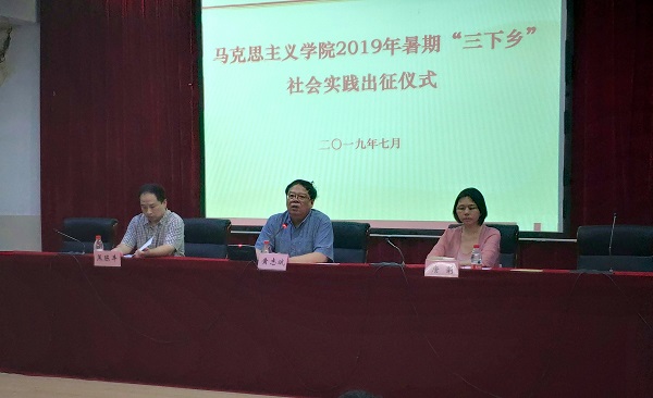 7月5日下午,金沙威尼斯欢乐人城2019年暑期“三下乡”社会实践出征仪式暨培训会在翡翠湖校区建艺馆负一楼报告厅举行。学院党政负责人、各实践团队指导教师和队员共100余人参加仪式。