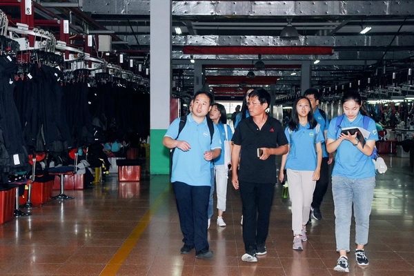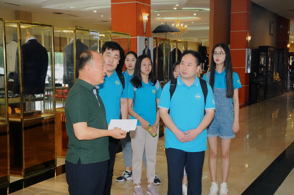 7月17日,实践团队来到新郎希努尔集团,受到企业总裁王金玲等负责人的热情接待。师生们参观学习了企业的服装个性定制工艺和生产流水线,现代化干净整洁的生产环境、高效率低能耗的生产设备和认真勤勉的职工都给团队成员留下了深刻的印象。企业负责人向师生们介绍,由大批量生产服装转向大规模个性化定制,是服装时尚行业对接工业4.0的必然趋势。企业一方面以客户为中心,依托最新的工业IT技术提升大规模个性化定制的效率;另一方面,将职工从繁重枯燥的劳动中解放出来,提升职工的劳动价值感和幸福指数,实现了企业经济效益和社会效益的双丰收。