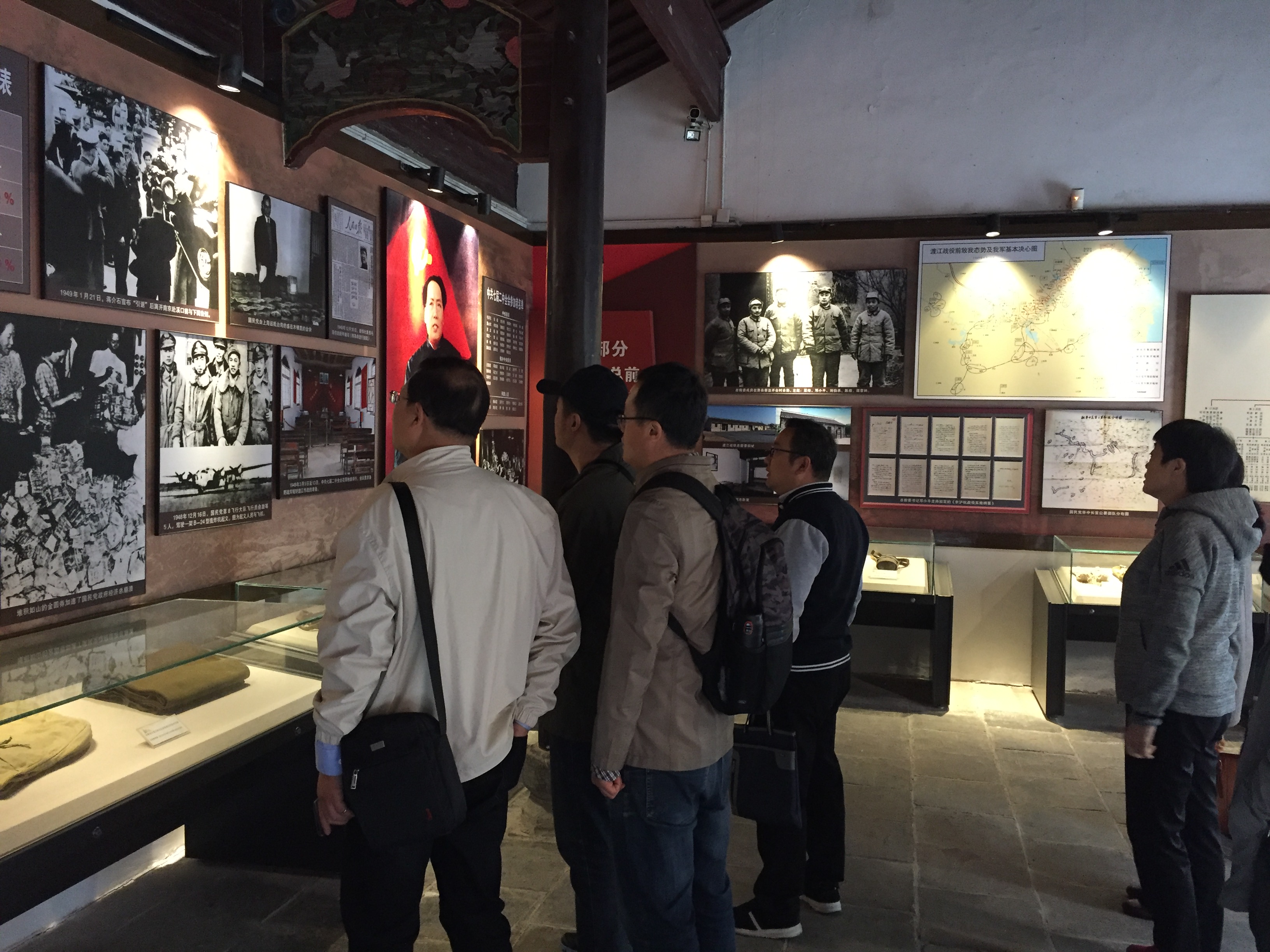 “纲要”党支部教师及学生一行人参观了渡江战役总前委以及华东局、参谋处、机要处、秘书处等旧址场馆。展馆中陈列的珍贵史料,历经数十年岁月沧桑的文物及老照片,让大家重温了属于那个年代的宝贵记忆,也引起了思考及讨论。中国共产党为什么能领导人民解放军取得一次又一次的胜利,关键在于民心所向,渡江战役也是靠人民群众用小车“推”出来的。