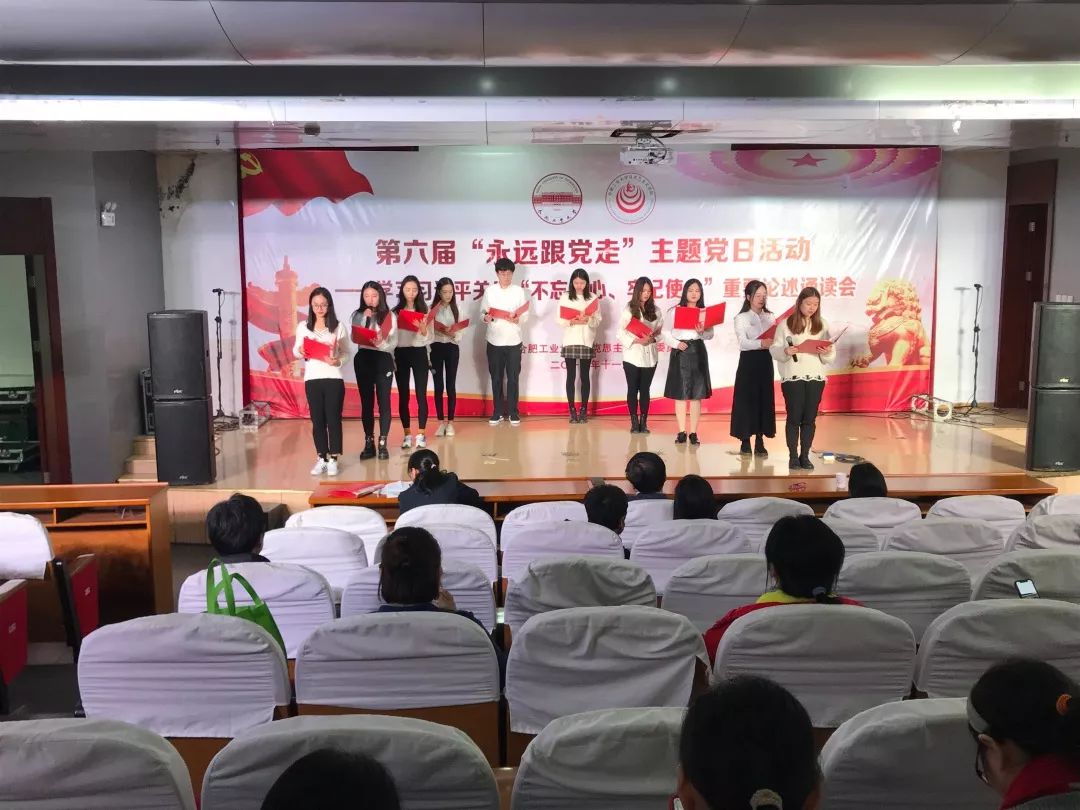 11月13日下午,金沙威尼斯欢乐人城于翡翠湖校区建艺馆负一层报告厅举办“永远跟党走”——学习习近平关于“不忘初心、牢记使命”重要论述诵读会。全院150余名师生党员、入党积极分子参加活动。