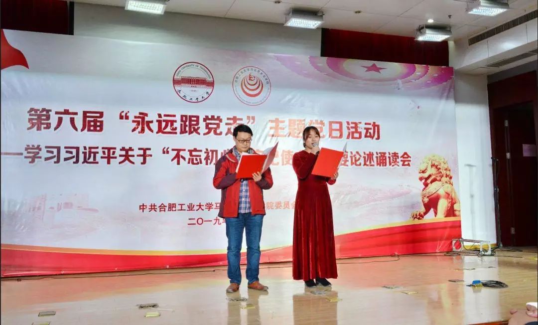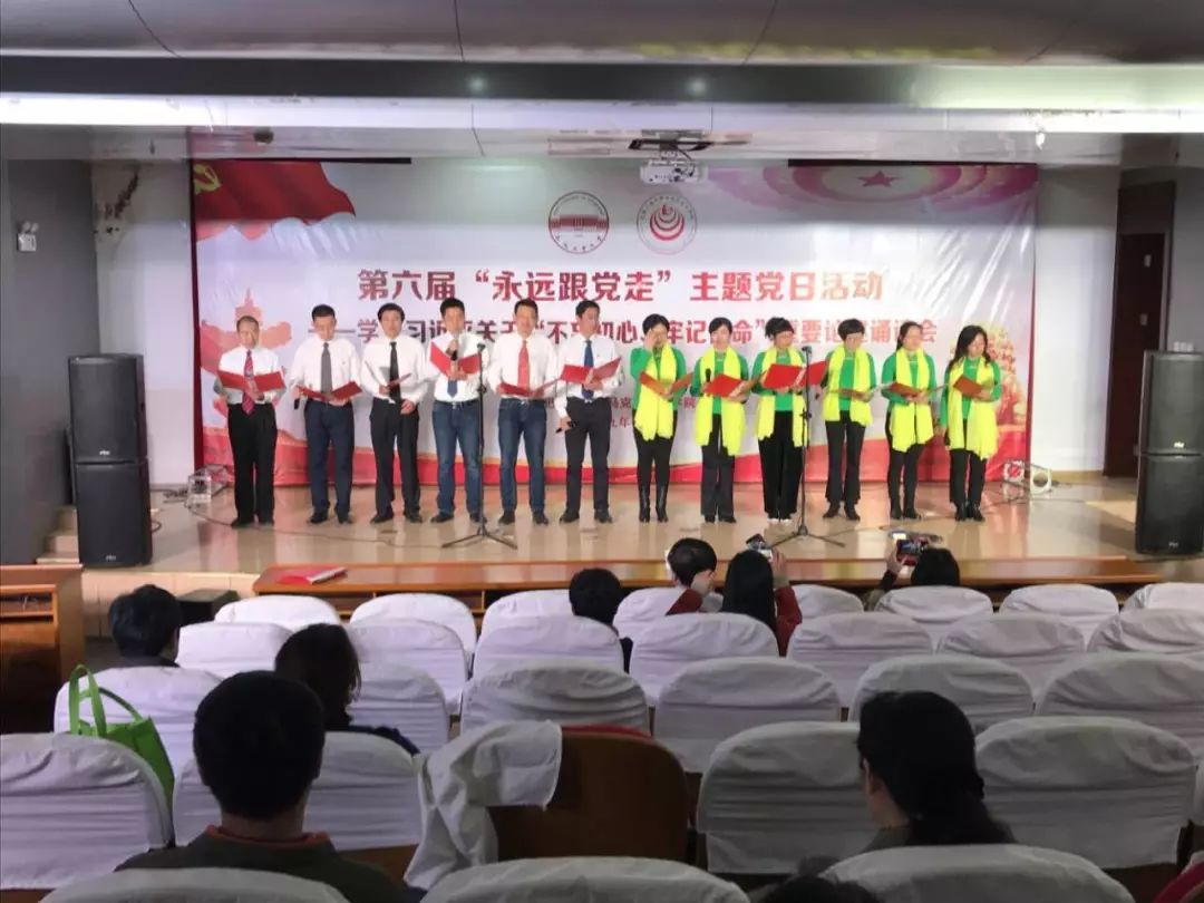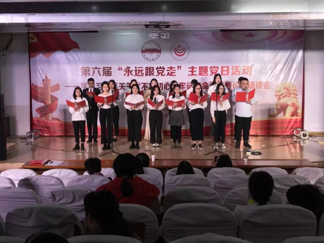 11月13日下午,金沙威尼斯欢乐人城于翡翠湖校区建艺馆负一层报告厅举办“永远跟党走”——学习习近平总书记关于“不忘初心、牢记使命”重要论述诵读会。全院150余名师生党员、入党积极分子参加活动。