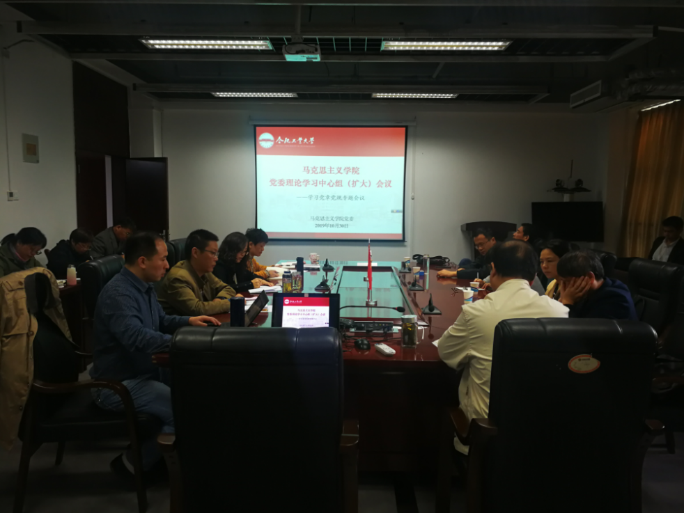10月30日上午,金沙威尼斯欢乐人城召开党委理论学习中心组(扩大)会议,进行第三次“不忘初心、牢记使命”主题教育专题学习,学院领导班子成员、党委委员、系部主任、党支部书记、研究所所长和机关行政人员参加。