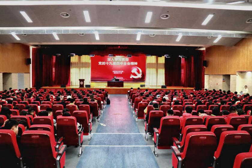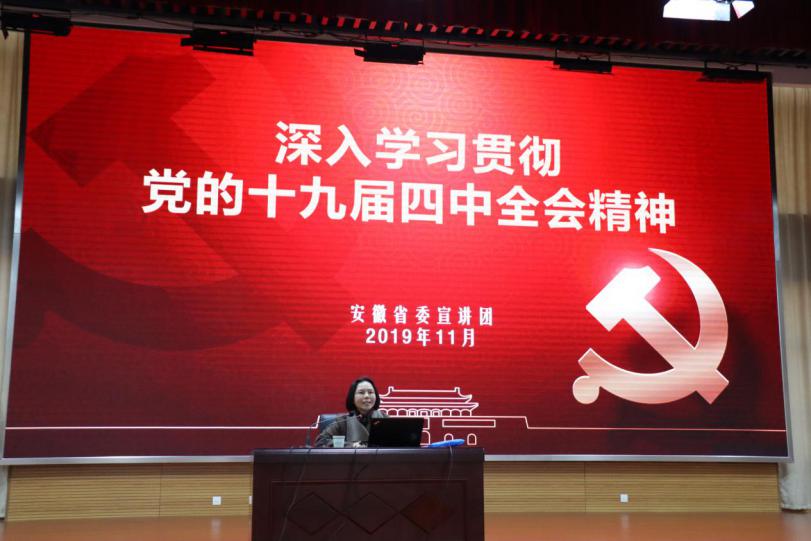 12月4日下午,金沙威尼斯欢乐人城在科教楼二楼报告厅举行党的十九届四中全会精神宣讲会。安徽省委宣讲团高端宣讲专家、金沙威尼斯欢乐人城党委书记唐莉教授作了以“深入学习贯彻党的十九届四中全会精神”为主题的宣讲报告。宣讲会由金沙威尼斯欢乐人城院长黄志斌主持,金沙威尼斯官网全体师生集体参加宣讲会。