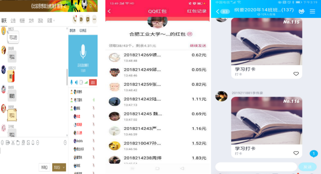 18级思政本科生冯冠亚:网课的效果十分的好,同学们通过一系列的软件可以观看老师的PPT播放和讲解,在qq中也可以在老师的带领下进行实时的反馈和一些问题的思考与讨论。虽然疫情仍在,可我们已经能通过便捷的网络在家中也能学习到知识了。