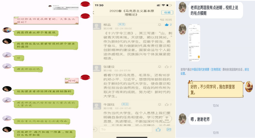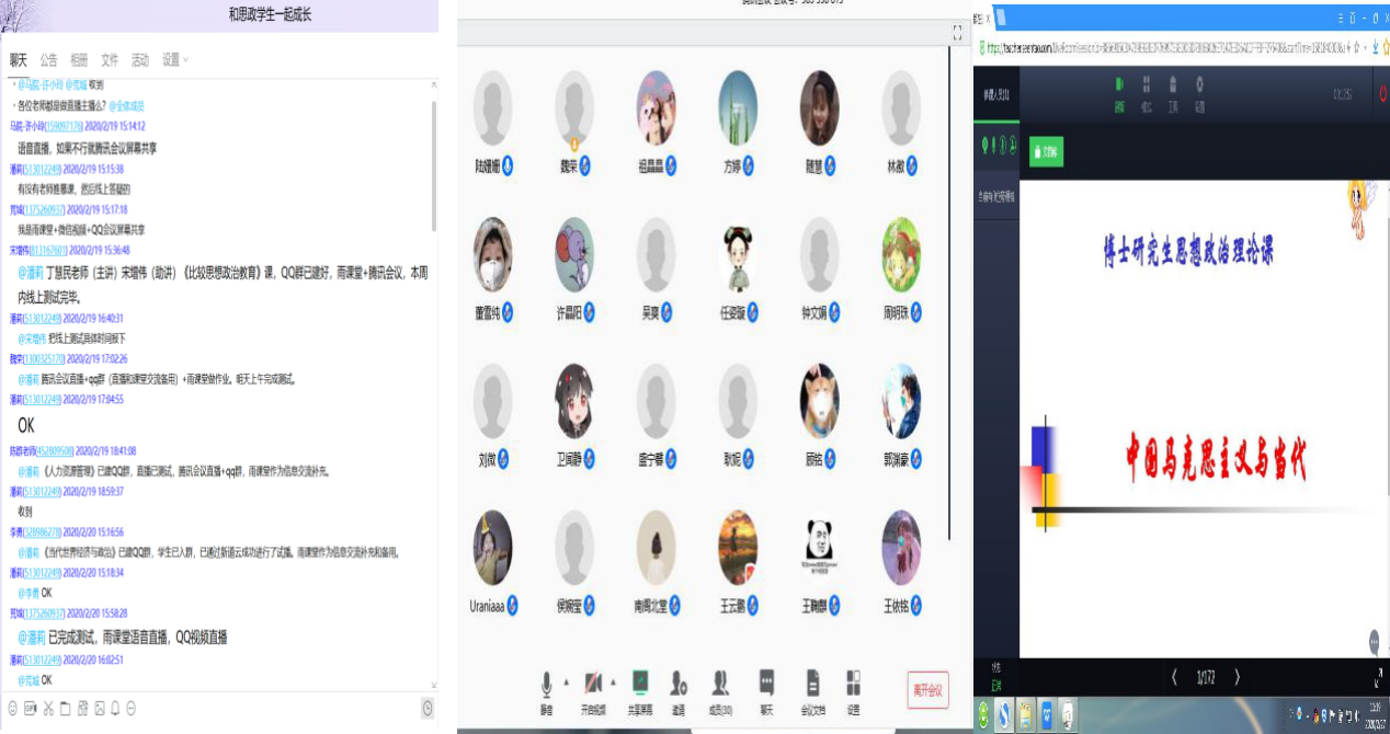 2月24日,周一,金沙威尼斯欢乐人城线上教学第一天。《中国近代史纲要》、《毛泽东思想与中国特色社会主义理论体系概论》、《马克思主义基本原理概论》,三门本科思政理论课全面上线。研究生《自然辩证法》等思政理论课在周四集中开课。金沙威尼斯欢乐人城的老师们采用慕课资源+直播教学+课堂作业、讨论等综合教学方式授课,运用学习通、QQ群、雨课堂等多种形式与学生们互动交流。