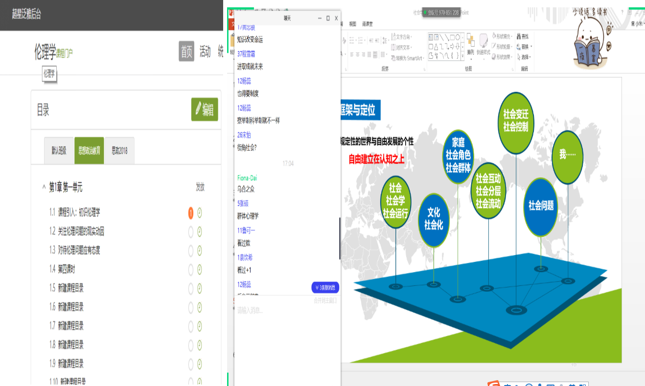 线上教学的第一周,思想政治教育本科专业课程主要《比较思想政治教育》《伦理学》《企业文化》等多门课程。思政系的丁慧民,魏荣,董军,朱浩,郭芙蓉几位老师主要通过腾讯会议、华为WlinK、QQ群语音直播、雨课堂语音直播等方式直播授课。