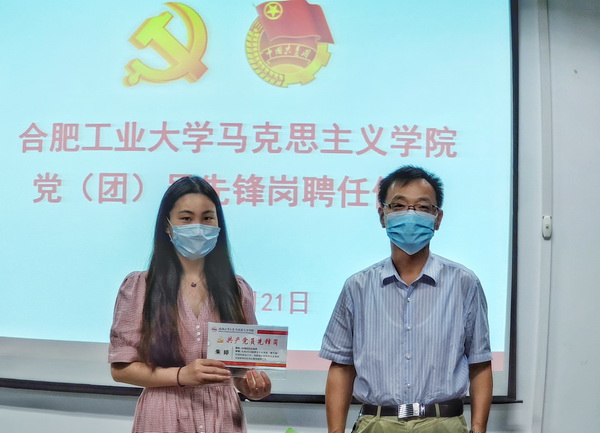 8月21日上午9时,金沙威尼斯欢乐人城在翡翠湖校区建艺馆612室,举行疫情防控党(团)员先锋岗聘任仪式。院党委书记尉德芳出席仪式并为受聘的首批9名研究生志愿者颁授先锋岗标牌。