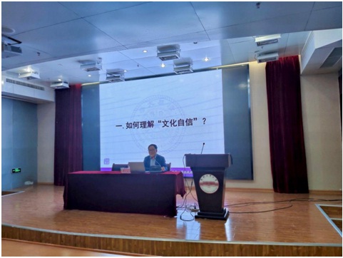 邹广文教授以“文化自信的三重关切”为题,着重讲述了文化自信的内涵、文化自信的重要意义、文化自信的三重关切三个问题。邹教授指出,文化自信是一个民族、一个国家以及一个政党对自身文化价值的充分肯定和积极践行,并对其文化的生命力持有坚定的信心。然而,当代文化发展的形势是严峻的,表现在经济与文化不匹配、文化的创造力不强、文化价值诉求混乱、文化的影响力不大四个方面。在谈到文化自信的三重关切时,邹教授从对中华民族文化传统的自信、对中国现实发展道路的自信、对中国未来发展前景的自信三方面进行讲解。邹广文教授引用习近平总书记指出的“绵延几千年的中华文化,是中国特色哲学社会科学成长发展的深厚基础。”点明了中华文化传统对学术研究的深远意义。全场报告会气氛活跃,师生反响热烈,掌声不断。