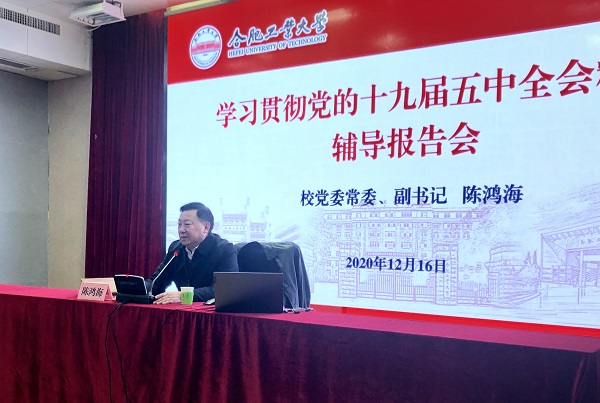 报告中,陈鸿海深刻阐述了党的十九届五中全会在关键时刻召开的历史背景、会议概况和重大意义,系统宣讲了全会取得的主要成果以及《中共中央关于制定国民经济和社会发展第十四个五年规划和二〇三五年远景目标的建议》的框架结构和核心要义。