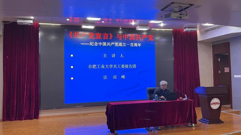 汪应峰首先介绍了《共产党宣言》诞生的时代背景,《共产党宣言》是一部揭示人类社会发展规律、为全人类谋解放的经典著作,是我们认识世界、改造世界的强大思想武器。他从《共产党宣言》的发表谈起,引出了《共产党宣言》是人类思想殿堂上璀璨夺目的珍宝,是一代代共产党人的第一本马克思主义经典著作,是共产党人不断从胜利走向新的胜利的必读书目。为使大家更好理解和把握这部经典著作,汪应峰讲述了陈独秀等人在上海创立共产党早期组织和陈望道翻译《共产党宣言》等故事,展现了《共产党宣言》对促进马克思主义在中国的传播和中国共产党的诞生的重要意义。他说,《共产党宣言》科学阐明了共产党人的崇高信仰,为中国共产党人提供了宝贵的精神财富。