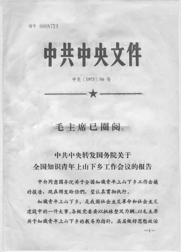 1973年6月10日毛泽东给李庆霖的复信印发全党。福建省莆田县城郊公社下林小学教师李庆霖,在写给毛泽东的信中,反映了其子上山下乡后生活上遇到困难。毛泽东于4月25日给李庆霖复信,寄去300元,并指出‘全国此类事甚多,容当统筹解决”。此后,中央政治局几次听取有关汇报,研究统筹解决知识青年上山下乡工作中的问题。国务院于六七月间召开了全国知识青年上山下乡工作会议。8月4日,中共中央转发《关于全国知识青年上山下乡工作会议的报告》。