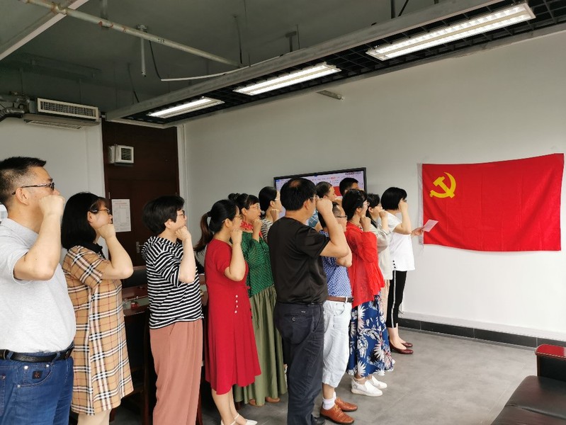 会议伊始,全体党员在支部书记汪士同志带领下重温入党誓词。大家面对党旗站立,高举右拳,庄严宣誓。