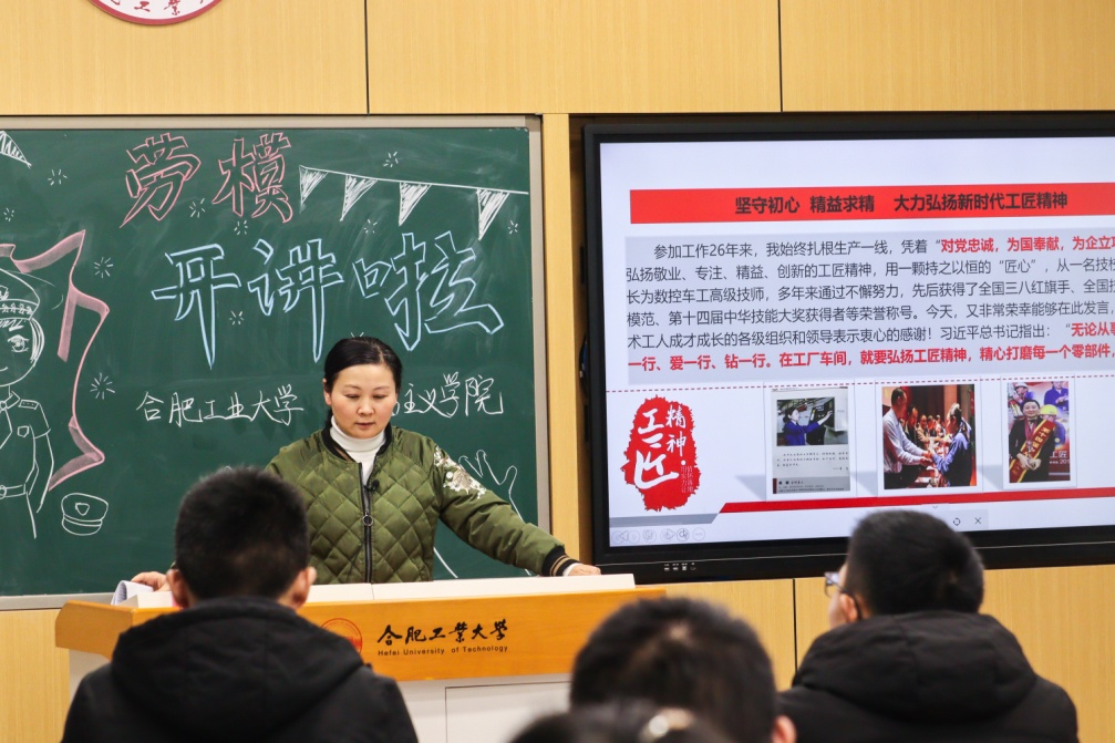 2020年11月27日,金沙威尼斯欢乐人城英模大师进课堂之“劳模开讲啦”在翡翠湖校区四教210顺利举办。本次开讲的两位英模分别是全国劳动模范、全国三八红旗手、全国技术能手、安徽省“五一劳动奖章”、“中华技能大奖获得者”、享受国务院政府特殊津贴的安徽叉车集团首席技师董慧劳模,以及荣获过首届“中国好人”、安徽省三八红旗手、全省公安机关“优秀人民警察”等称号的“谈判专家”葛杨警官。活动采取实体课堂的形式进行,主讲教师为金沙威尼斯欢乐人城何美博士,金沙威尼斯欢乐人城院长牛小侠教授和副院长潘莉教授作为嘉宾老师出席。