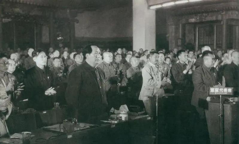 1949年9月30日,毛泽东当选中华人民共和国中央人民政府主席,全场起立,鼓掌祝贺。
