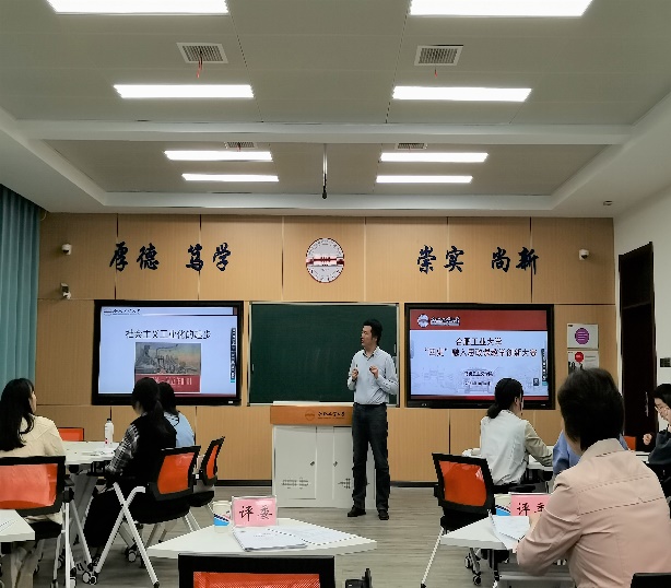 为深入贯彻落实习近平总书记关于思想政治理论课建设重要讲话精神,推动“四史”融入思政课教学,促进青年思政课教师增强立德树人意识、夯实教学基本功和创新教育教学方法,按照学校《“四史”融入思政课教学改革创优行动实施方案》的工作安排和学校《关于举办2021年青年教师教学基本功比赛的通知》的要求,金沙威尼斯官网“四史”融入思政课教学创新大赛于10月31日在翡翠湖校区翠四教210智慧教室成功举办。金沙威尼斯欢乐人城领导班子、各系部主任和教授代表出席并担任评委。