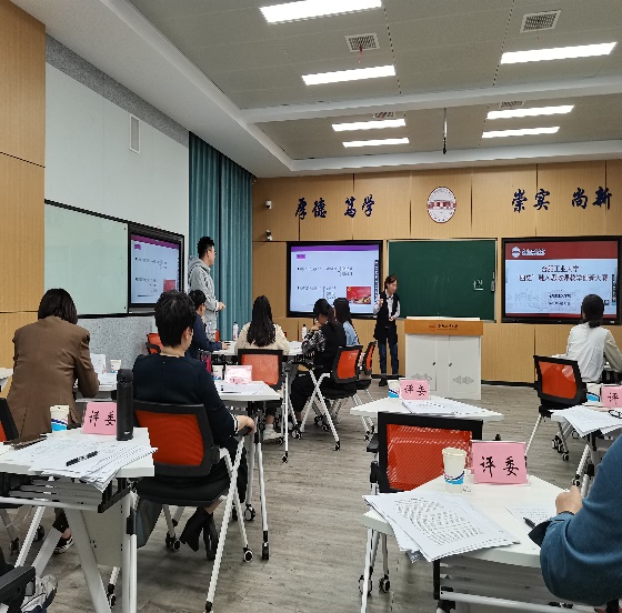 选手们讲课结束,评委们做出了精彩点评。唐莉教授从选题、教风、教学内容、教学设计等方面进行了细致点评,充分肯定了诸位青年教师的教学表现,并对每位参赛选手的亮点进行了总结,特别肯定了他们在价值引领上的出色设计。在肯定优点的基础上,唐莉教授对一些共性问题提出了三点建议:一是要根据学生的学习阶段对理论深度进行调整;二是在教学方法方面增强学生的参与度和问题链的运用;三是需要增强亮点,增强课程的吸引力和感染力。在唐莉教授点评的基础上,罗健主任提出要进一步研究学生心理,增强设计感,形成个人的教学风格;房彬主任提出要进一步加强对智慧教室的运用;陈华主任建议要增强情感投入度。潘莉副院长从课程设计和教学深度两个方面对参赛选手进行了有针对性的指导,她特别指出深度不仅仅是理论的深度,还要增强学生学习动机、引导学生从已知出发探索未知,在“有所悟”中提升学生的教学获得感。