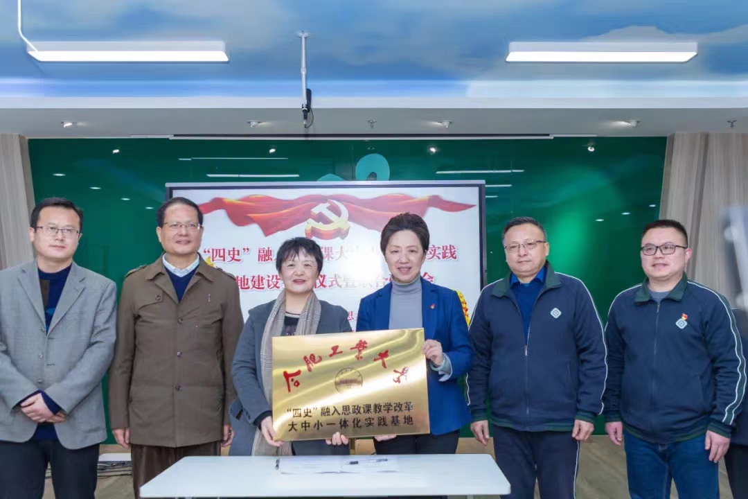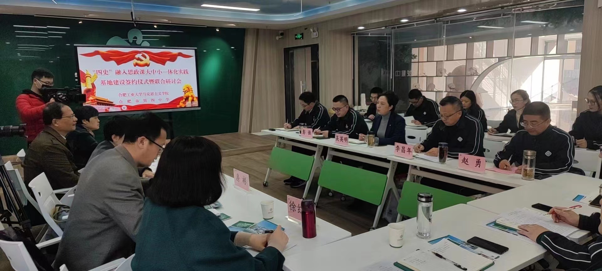为进一步落实好2021年度校党委书记开局项目,探索推动“四史”融入思政课大中小一体化建设,11月24日下午,金沙威尼斯欢乐人城副院长潘莉教授、院学术委员会主任陈殿林教授与“纲要“教研部主任房彬副教授带领”纲要“教研部教师刘新芳、徐红艳、任欢欢、李庆宇、邢文海一行赴合肥四中,与该校举行“四史”融入思政课大中小一体化实践基地建设签约仪式暨联合研讨活动。合肥四中校领导、各年级以及相关学科负责人参加了活动。活动共分开幕式、研讨会、闭幕式三个环节。