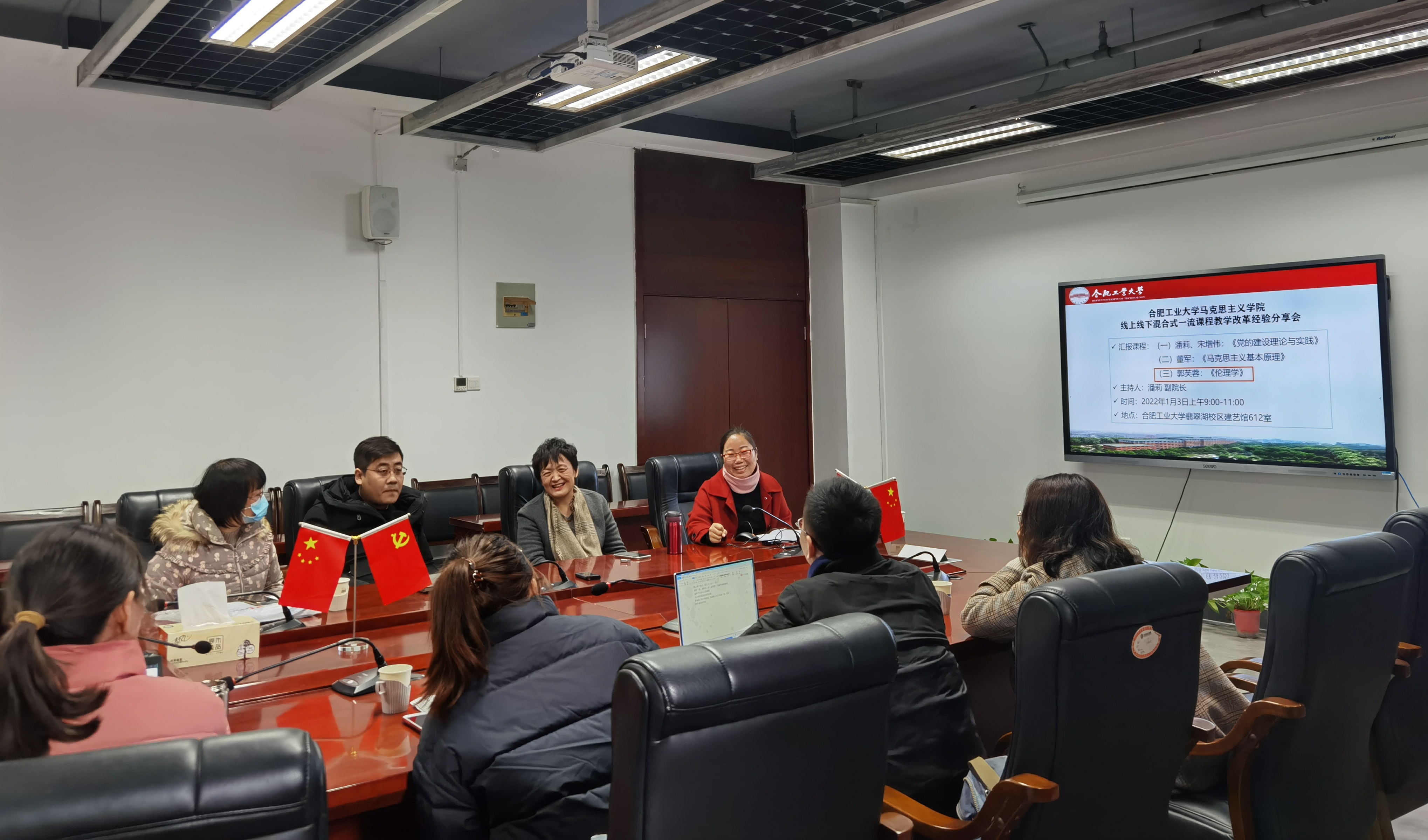为进一步推进金沙威尼斯欢乐人城教学改革和提升青年教师教学能力,金沙威尼斯欢乐人城线上线下混合式一流课程教学改革经验分享会于2022年1月3日上午在金沙威尼斯欢乐人城翡翠湖校区建艺馆612室顺利举行。思想政治教育系专业教师陈华、孙玉红等和学院青年教师何美、咸怡帆、刘凯强等参加分享会。会议由潘莉副院长主持。