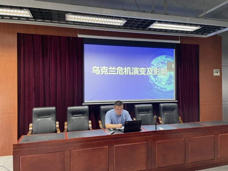 随后,韩佶老师围绕《乌克兰危机演变及影响》的专题内容,从“复杂的历史经纬”“激烈的多维较量”“广泛的国际影响”和“坚定的中国立场”四个角度,深刻阐述了俄乌危机的历史缘由和我国的正确主张。
