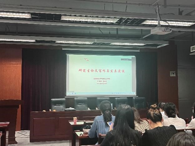 王赟鹏老师从论文选题、论文写作、论文修改、论文发表四个部分展开精心分享。王老师以生动的语言提及在论文选题和写作中要做到心中有“他/她”、心中有“谱”和下笔有“我”。针对论文的修改,王老师强调同学们要严格恪守学术规范,呼吁大家“好文章是改出来的”。最后,王老师与同学们分享:理论学习要有三境界,要有志存高远的追求,要耐得住寂寞静下心来苦读,要独立思考学有所得,最终你蓦然回首,豁然开朗。