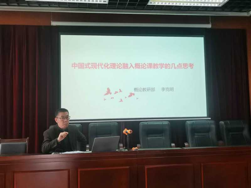 来自学院五个系(部)的五名思政教师分别通过说课、示范课、理论探讨等方式,展示了在《中国近现代史纲要》《马克思主义基本原理》《毛泽东思想与中国特色社会主义》《习近平新时代中国特色社会主义思想》《思想道德与法治》等五门课程中学习宣传贯彻党的二十大精神的要点、方法与路径。徐素田老师通过说课方式,展示了《全面总结党的百年奋斗重大成就和历史经验》知识点授课方式。他特别强调要备“学情”,通过列举与专业相关的具体实例来说明党的百年奋斗重大成就和历史经验。张继龙老师以《“高度契合论”融入<马克思主义基本原理>的教学资源挖掘》为研讨题目,展示了中华优秀传统文化同科学社会主义价值观主张具有高度契合性的学理性分析,强调要弄清楚“科学社会主义价值观主张”与“社会主义核心价值观”“科学社会主义基本原则”“中华优秀传统文化”这三个概念的区别和联系。李克明老师以《中国式现代化理论融入概论课教学的几点思考》为题,从历史角度讲述了“现代化”的概念由来和模式演变过程,并指出了中国式现代化理论与毛泽东工业化思想一脉相承。闫莉老师则讲述了“六个必须坚持”的授课方法,其娓娓道来的授课方式,令师生倍感亲切。鞠秋洋则通过示范课讲述了《中国精神的丰富内涵》。