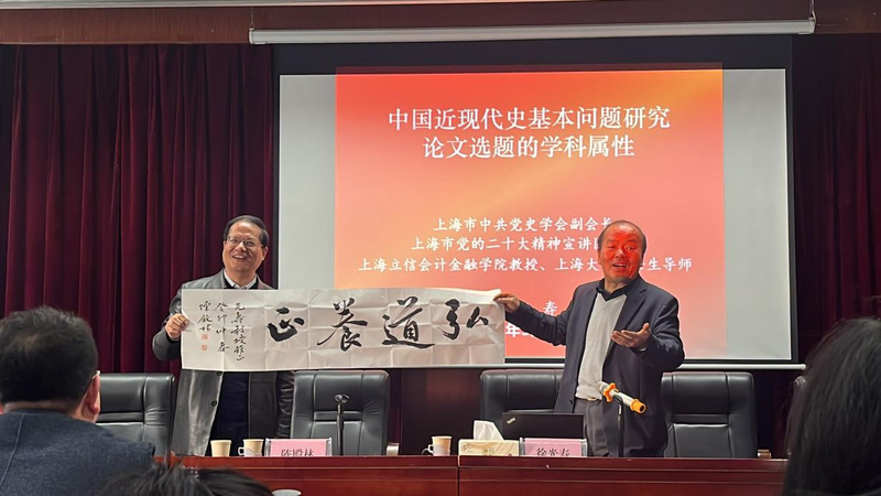 报告会尾声,陈殿林教授向徐教授赠送自己题写的“弘道养正”书法作品以示感谢。会场学术交流气氛热烈,广大师生积极参加交流活动,取得了良好效果。