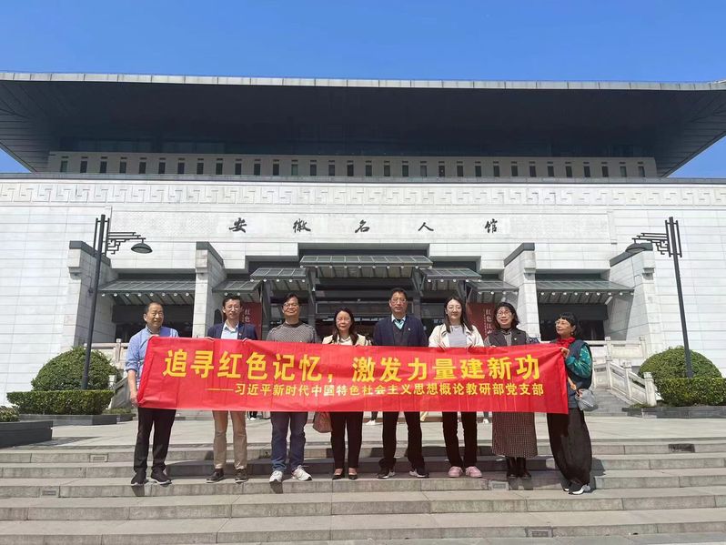 为深入学习领会习近平总书记在学习贯彻习近平新时代中国特色社会主义思想主题教育工作会议上的重要讲话精神,积极贯彻落实党中央、教育部党组及学校党委关于开展主题教育的部署和要求,推动贯彻党的二十大战略部署,教育引导党员教师学思想、强党性、重实践、建新功,4月26日,《习近平新时代中国特色社会主义思想概论》教研部党支部组织全体党员到渡江战役纪念馆和安徽名人馆开展“追寻红色记忆 激发力量建新功”主题党日活动。