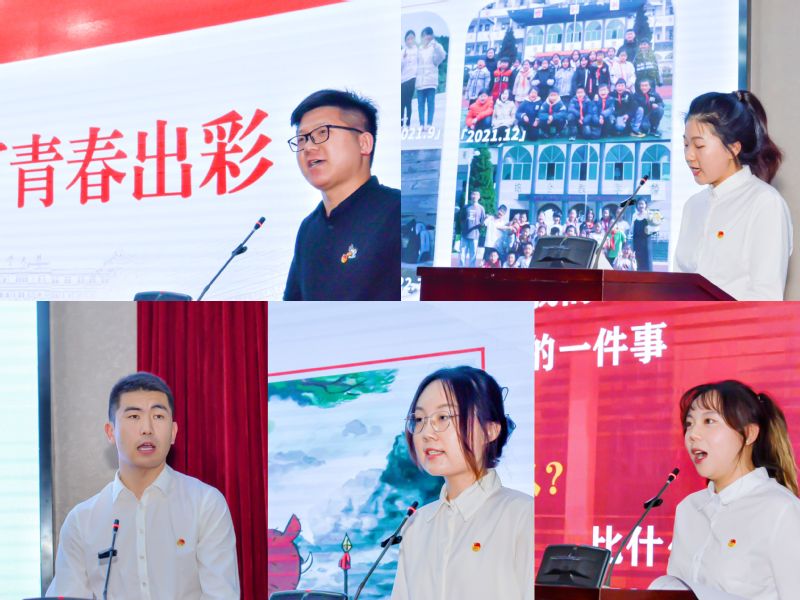 在优秀青年故事分享环节,五位青年学生分别带来他们的故事。2020级本科生吴雨曈以“服务同学、成就自我,成为值得信任的学生干部”为主题,通过分享自己以德为先、以文化己、以体强魄、以美育心的团学工作经历,展示了一名优秀学生干部铭“大我”于心,践“有我”于行,修“无我”于身,在与集体的共同进步中成就了自我的青春故事。2021级本科生巴音塔以“青春心向党 无悔军旅路”为主题,讲述了自己携笔从戎的难忘经历与卸下戎装后继续保持勤俭节约、吃苦耐劳、坚持不懈等优良品质的参军故事,激励青年学生珍爱生命、艰苦奋斗、报效祖国。2022级硕士研究生刘茵以“以奋斗书写青春答卷”为题,讲述了自己曾赶赴贵州支教,将青春挥洒在祖国的西部,也曾参加全国青马班学习,在知行合一中提升自我,激励同学们为成为优秀的青年马克思主义者而奋斗。2021级本科生常倩倩以“何处不是浪浪山?”为主题,讲述了自己凭着坚定的信念和毅力攀越书山、横渡学海,一路进取、一路高歌,最终获评校“大学生自强之星”的励志故事。2021级博士研究生娄博华以“大学如何青春出彩”为主题,他认为,“努力读书”是“破卷”的第一法宝,“追求志趣”是“克烂”的关键利器,讲述了自己投身创新创业和远赴新疆支教的生涯故事。