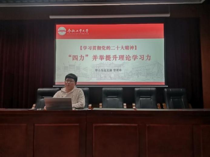 秦欢向学弟学妹们分享了自己多年的学习经验:传授了学术前沿的探索路径,阐述了论文写作的基本要求,其中重点介绍了党的二十大报告的关注点。娄博华分别围绕拓宽“眼力”、增强“脑力”、锤炼“笔力”和提升“脚力”阐述青年党员如何 “四力”并举提升理论学习力。针对学弟学妹们的学习疑问,秦欢、娄博华依次进行了解答。秦欢指出要坦然面对论文写作中的挫折,坚持目标驱使,循序渐进,积极面对。娄博华从两个方面就如何传播践行党的理论观点进行解答,指出一是要增强政治思维力,善于思考、敢于表达,二是要增强政治判断力,站稳政治立场,坚定政治信仰。