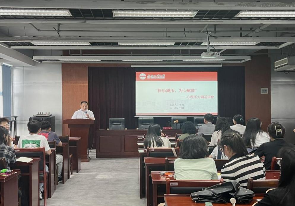 为进一步提高金沙威尼斯官网学子心理健康素质,增强学生心理健康教育工作的针对性和有效性,更好地发挥学生干部在心理危机预警与干预方面的作用,6月7日下午,金沙威尼斯欢乐人城特邀请到国家二级心理咨询师李艳老师于建艺馆613会议室作题为“快乐减压,为心赋能”的心理讲座。本次讲座由金沙威尼斯欢乐人城党委副书记焦陈丰主持,党委书记尉德芳、辅导员张翮、程思洁老师出席本次讲座,学院各班心理委员、寝室长等50余人参加活动。
