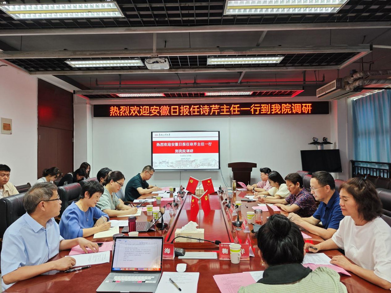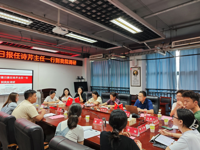 7月6日,《安徽日报》理论部主任任诗芹一行来我院调研。牛小侠院长、潘莉副院长、董军教授、罗健教授、李克明教授、卯诗珍副教授、马贵侠副教授、鞠秋洋博士、邢文海博士等思政课教师以及来自马克思主义学院、建筑与艺术学院、汽车与交通工程学院等10多名学生代表共同参与座谈交流,座谈会由潘莉副院长主持。