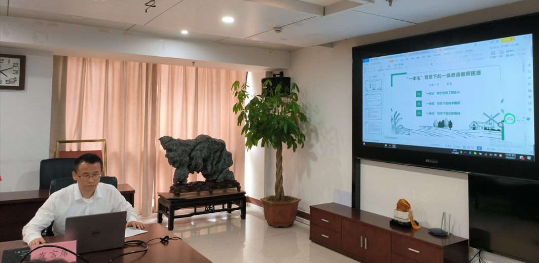 张斌院长从国家教材建设宏观角度分析了大中小学思政理论课一体化建设的重要性和紧迫性,从安徽省的教育发展角度,对如何推进思政理论课一体化共同体建设谈了指导性的意见;对安徽省大中小思政理论课一体化的工作进展、以及2023年安徽省如何推进大中小学思政理论课一体化建设的重点工作计划,做了全面、深入的交流。