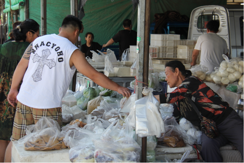 走进集市,感受到浓浓的乡村烟火气。初升的阳光驱散云层,和煦的微风轻拂新高,村民们早早地开始了新的一天生活。一大早,集市内人声鼎沸,周围的村民们聚集此处,采购新鲜的食材、衣物和生活用品等。在集市旁的代县滹沱河湿地公园附近的家禽市场,商贩们忙于推销介绍鸡鸭鸟兔。团队成员在这里感受到了当地人的朴实和热情,用相机捕捉了许多富有生活气息的瞬间。